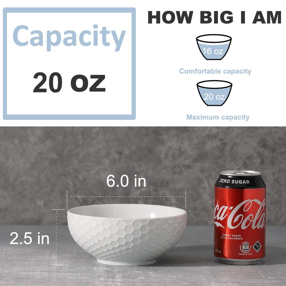 Buyajuju Cereal Soup Bowls, 20 Ounce White Bowls Set, Porcelain Bowls For Oatmeal, Rice, Salad, Pasta And Noodle, Set Of 4 (6Inc