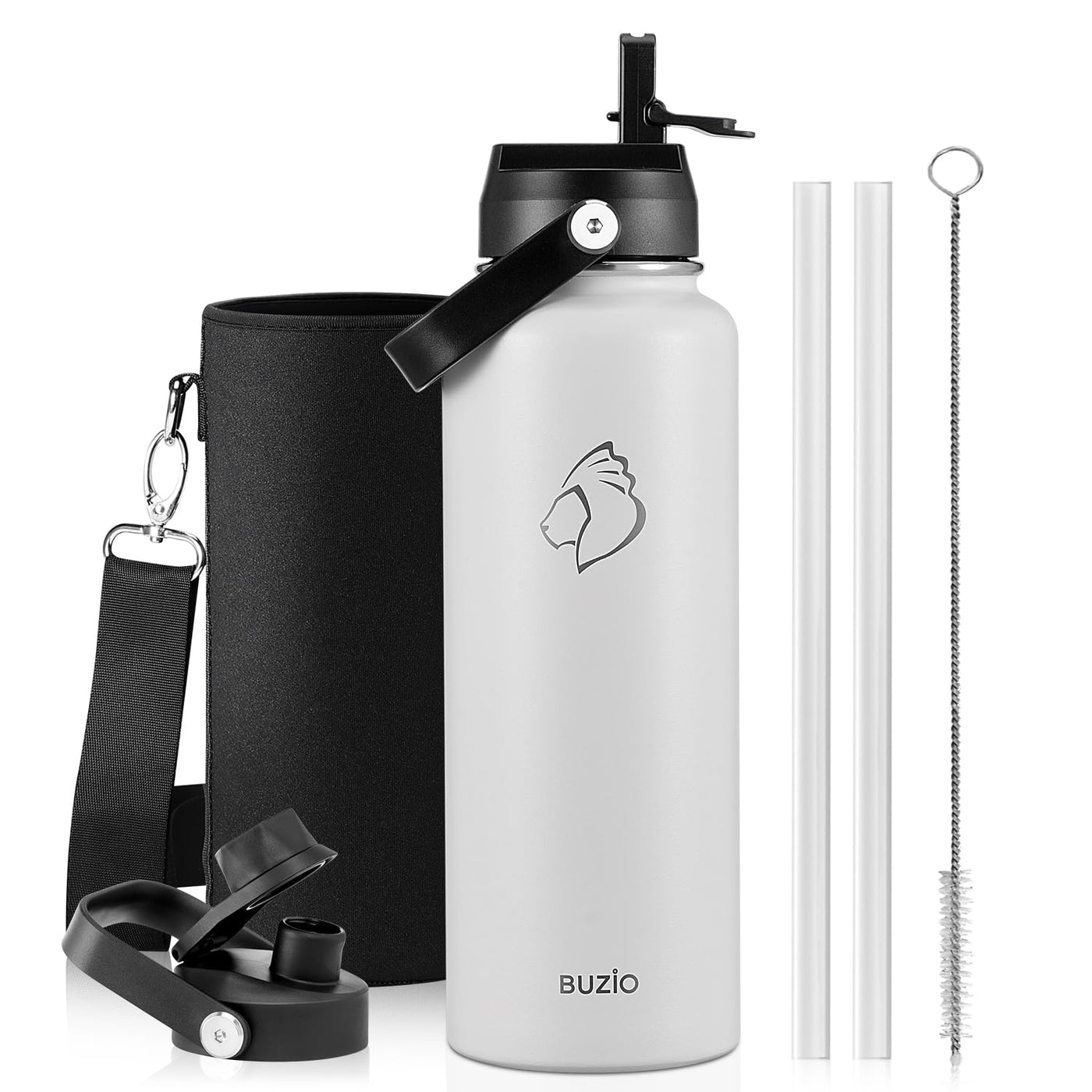 BUZIO 40 oz Water Bottle Insulated, Triple Wall Vacuum Stainless Steel Flask (Cold for 48 Hrs), Leakproof BPA-Free Wide Mouth Me