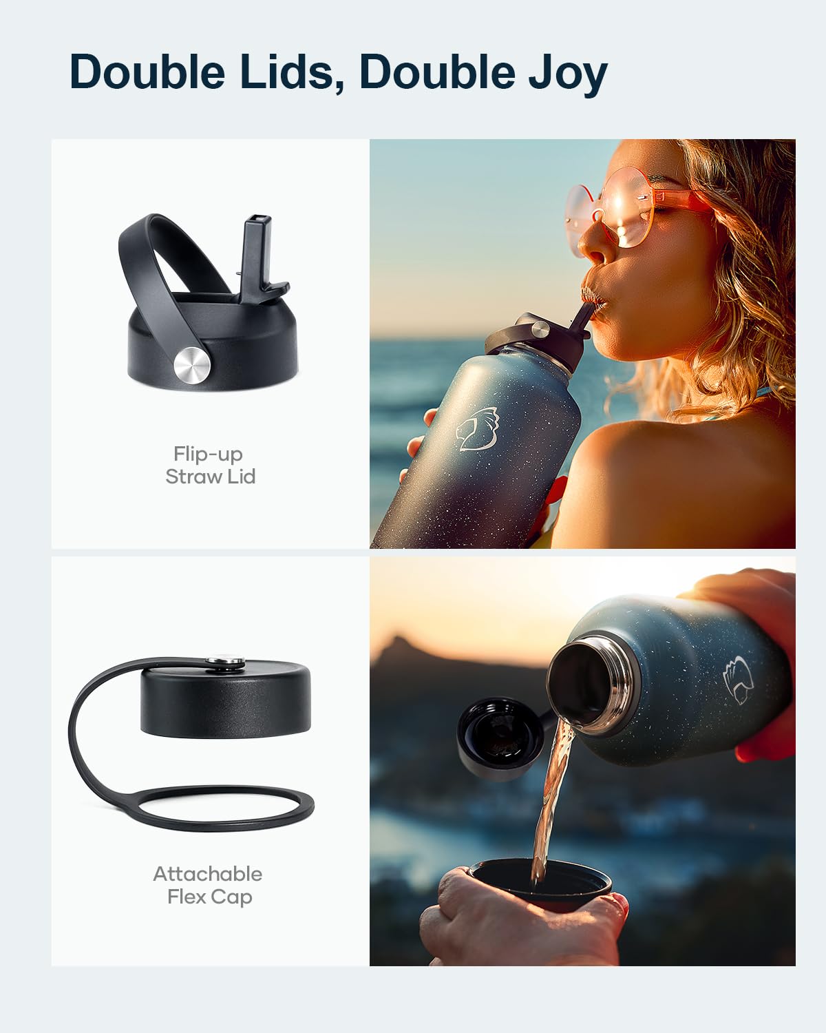 - Q: Does the BUZIO water bottle come with any accessories? A: Yes, the BUZIO water bottle comes with a carrying pouch, a straw lid, a flex lid, two straws, and a bottle brush for easy cleaning.
