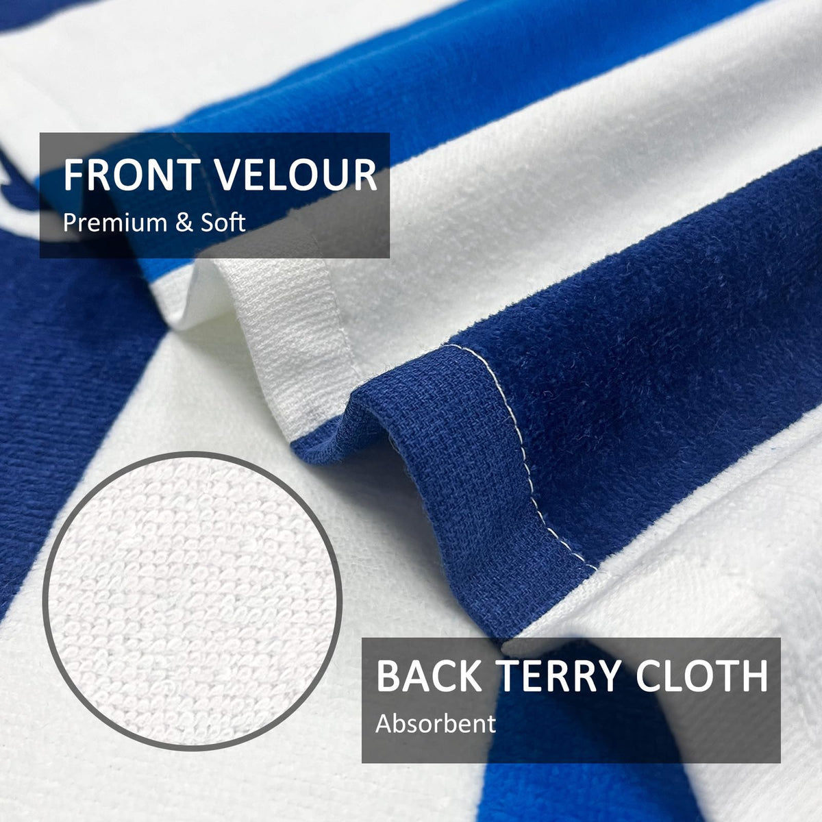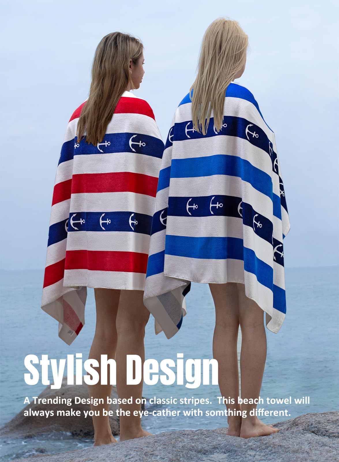 Cabanana Large Beach Towel Oversized - Cotton Velour 35 X 70 Inch Anchor Striped Terry Pool Towel, Cabana Soft Swimming Towel Fo