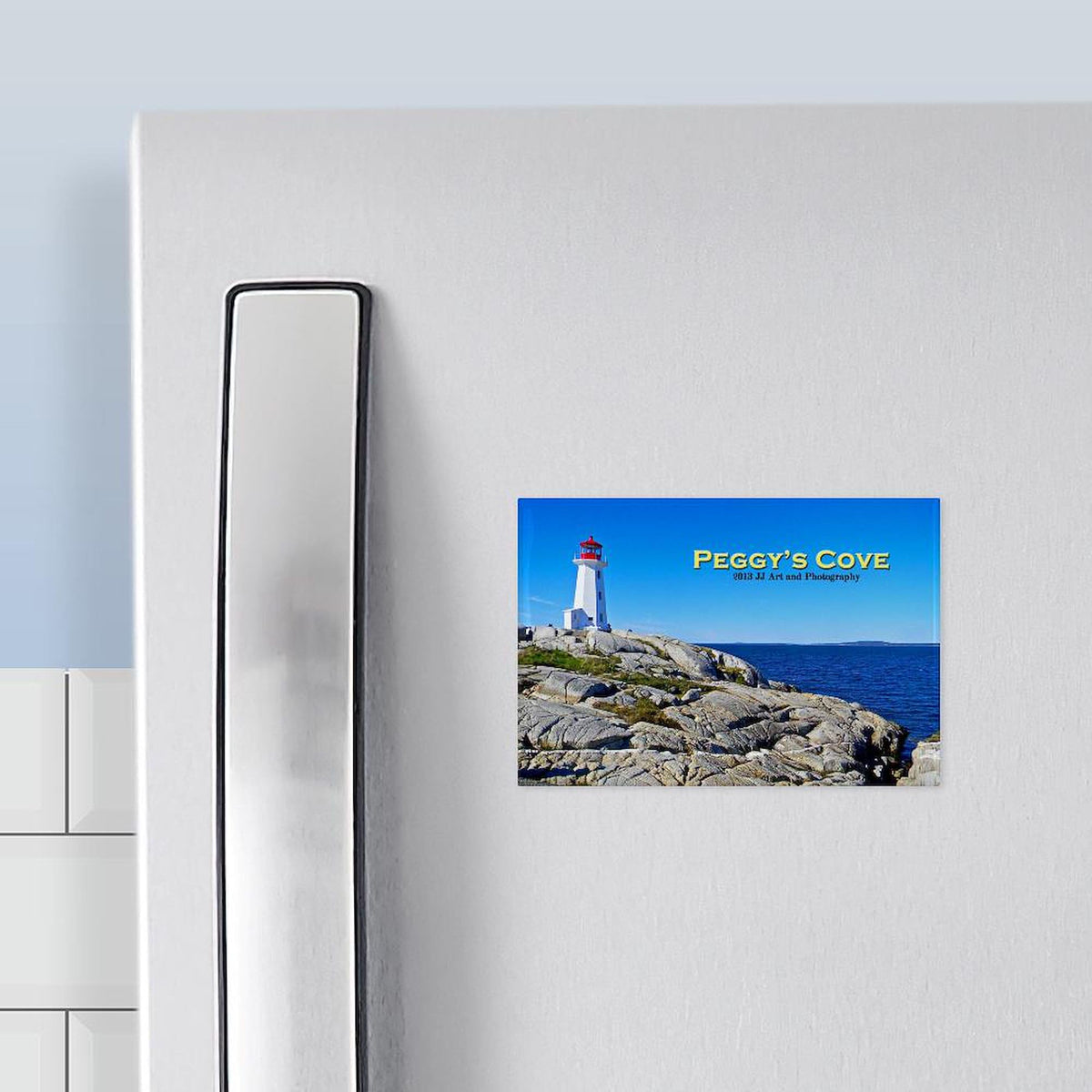 - Q: What are the dimensions of the CafePress Peggy's Cove Rectangle Magnet? A: The dimensions of the CafePress Peggy's Cove Rectangle Magnet are approximately 3 inches by 2 inches.