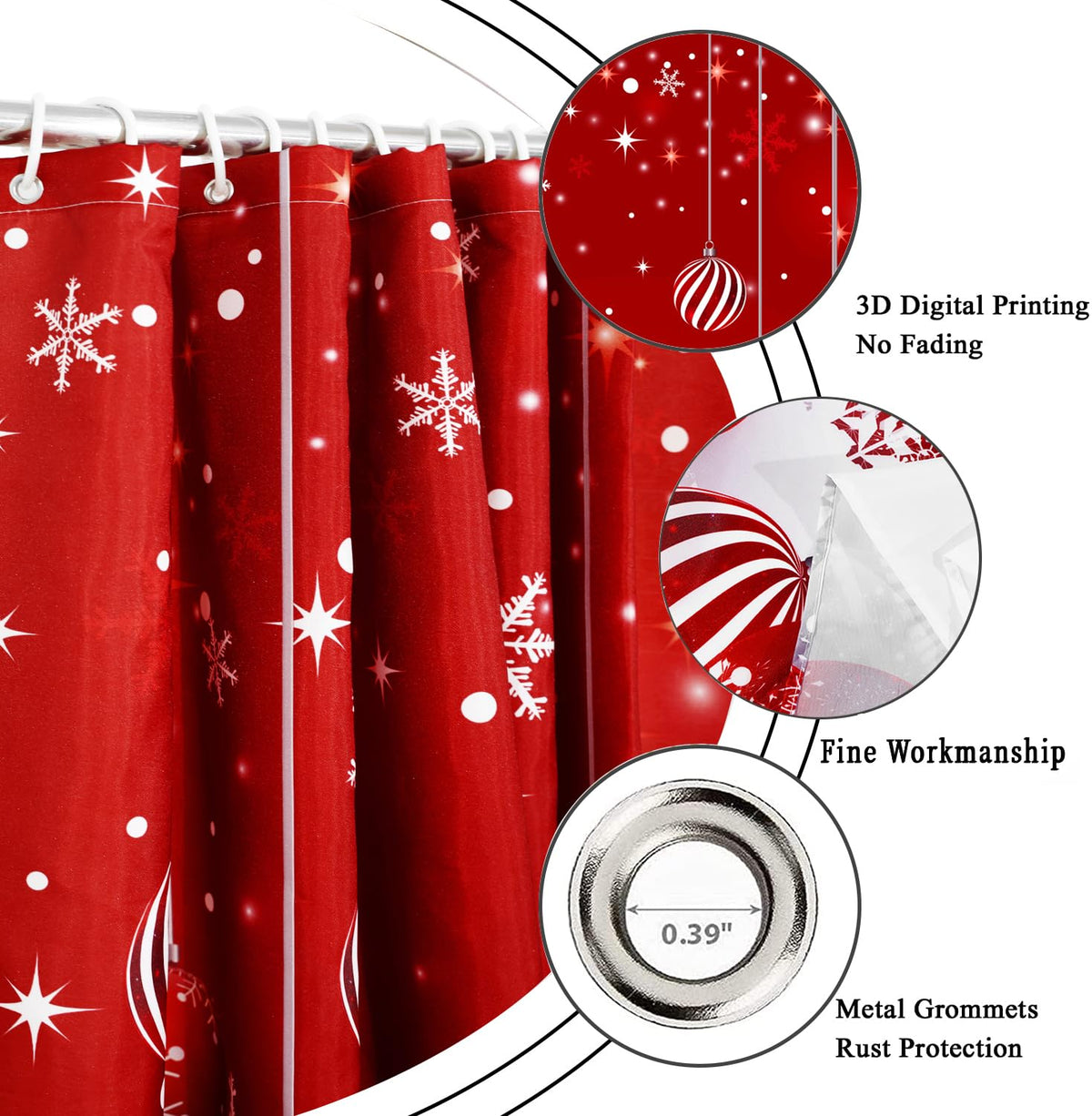 • Q: Is the Caheansi Christmas Shower Curtain waterproof? A: Yes, the Caheansi Christmas Shower Curtain is made from 100% polyester fabric, which provides a good waterproof effect to keep your bathroom dry.