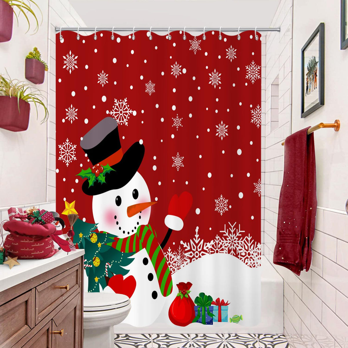 Caheansi Christmas Snowman Shower Curtain, Red Xmas Snowman Snowflake Pine Tree Winter New Year Holiday Bathroom Curtain Waterpr