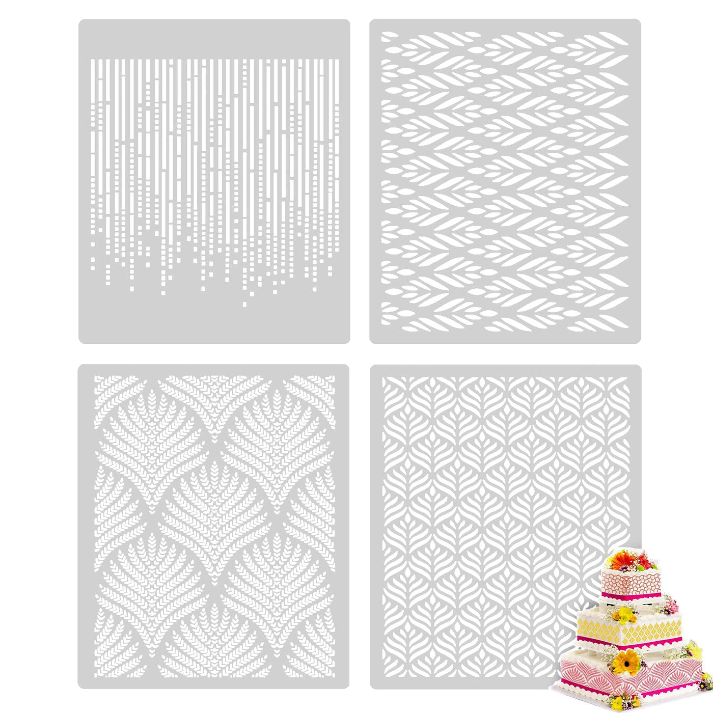 • Q: Are these stencils suitable for beginners? A: Absolutely! The stencils are easy to use, making them ideal for both beginners and experienced bakers looking to enhance their cake decorating skills.