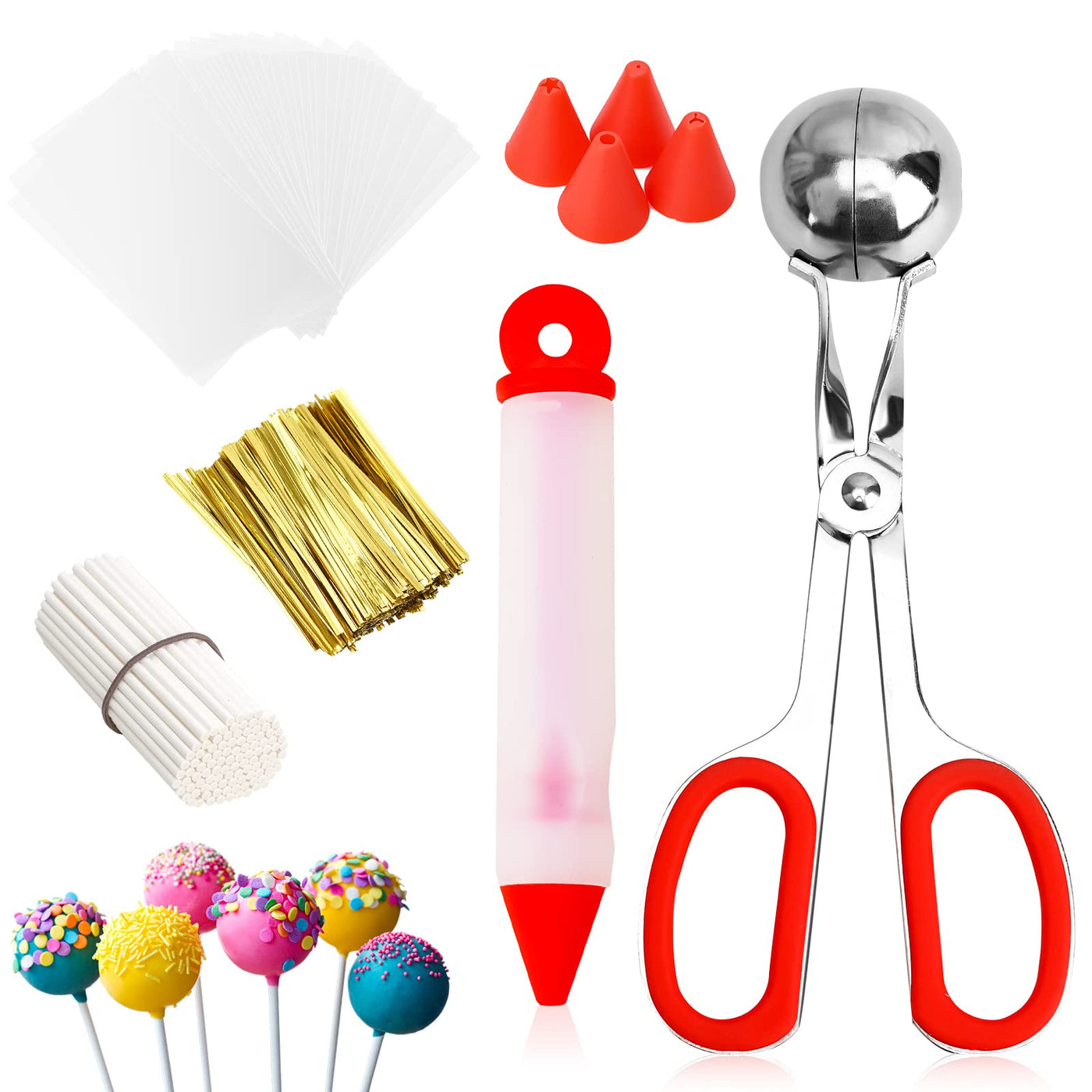 Cake Pop Kit, Including 100 Cake Pop Sticks And Wrappers, 100 Twist Ties, 1 Cake Pop Scooper And Decorating Pen, Cake Pops Makin