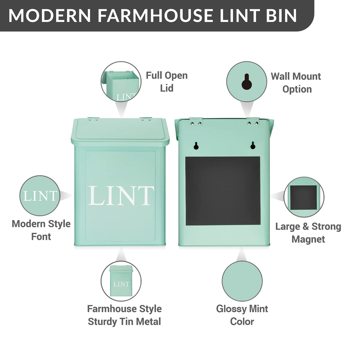 Calindiana Modern Farmhouse Metal Lint Bin For Laundry Room, Mint, 10L