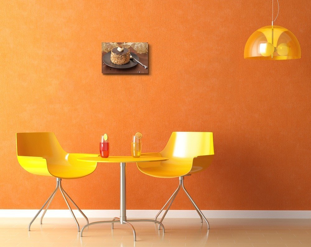 - Q: What is the theme of the artwork? A: The artwork features a miniature chocolate meringue cake with cream and almonds, fitting well with modern home decor.
