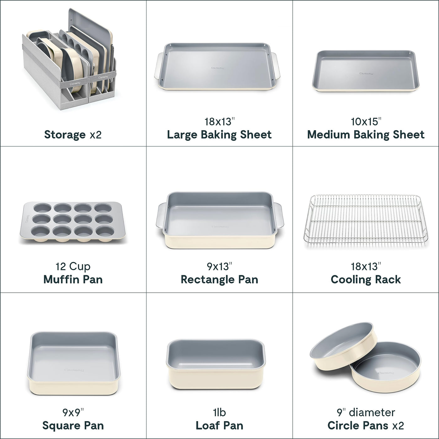 Caraway Nonstick Ceramic Bakeware Set (11 Pieces) - Baking Sheets Assorted Baking Pans Cooling Rack & Storage - Aluminized Steel Body - Non Toxic PTFE & PFOA Free - Cream