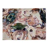 • Q: What is the design theme of the Crab Fabric Placemat? A: The placemat features vibrant dyed designs, including crab motifs, adding an artistic touch to your dining experience.