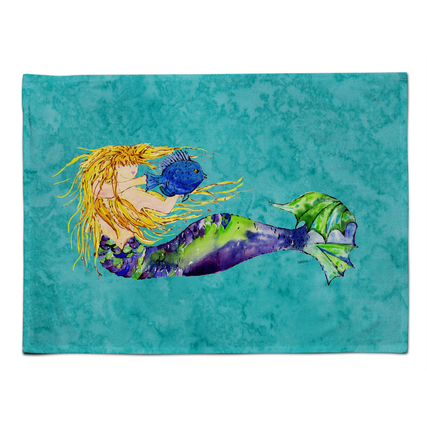 'Caroline's Treasures 8724PLMT Blonde Mermaid On Teal Fabric Placemat Multicolor''