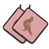 'Caroline's Treasures African Owl Pigeon Pink Check Decorated Pot Holder 7.5'''' x 7.5''''''