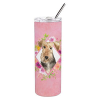 'Caroline's Treasures Airedale Terrier Pink Flowers Double Walled Stainless Steel 20 oz Skinny travel-insulated-tumblers Multicolor''
