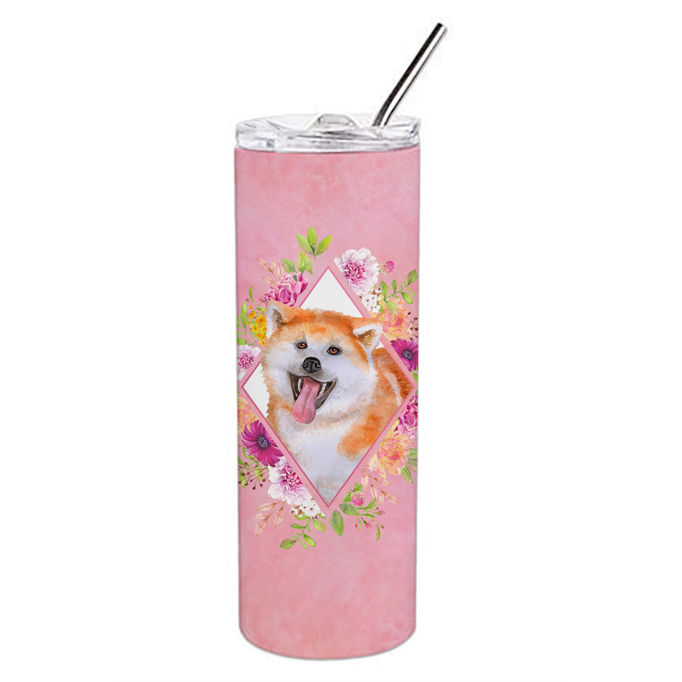 'Caroline's Treasures Akita Pink Flowers Double Walled Stainless Steel 20 oz Skinny travel-insulated-tumblers Multicolor''