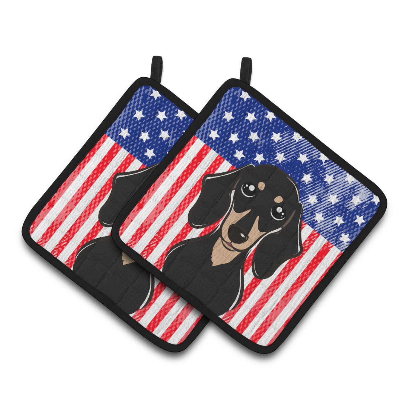 Model No : Bb2145Pthd''Caroline'S Treasures American Flag & Smooth Black & Tan Dachshund Pair Of Pot Holders Bb2145Pthd 7.5Hx7.5W Multicolor''Brand : Caroline'S Treasures