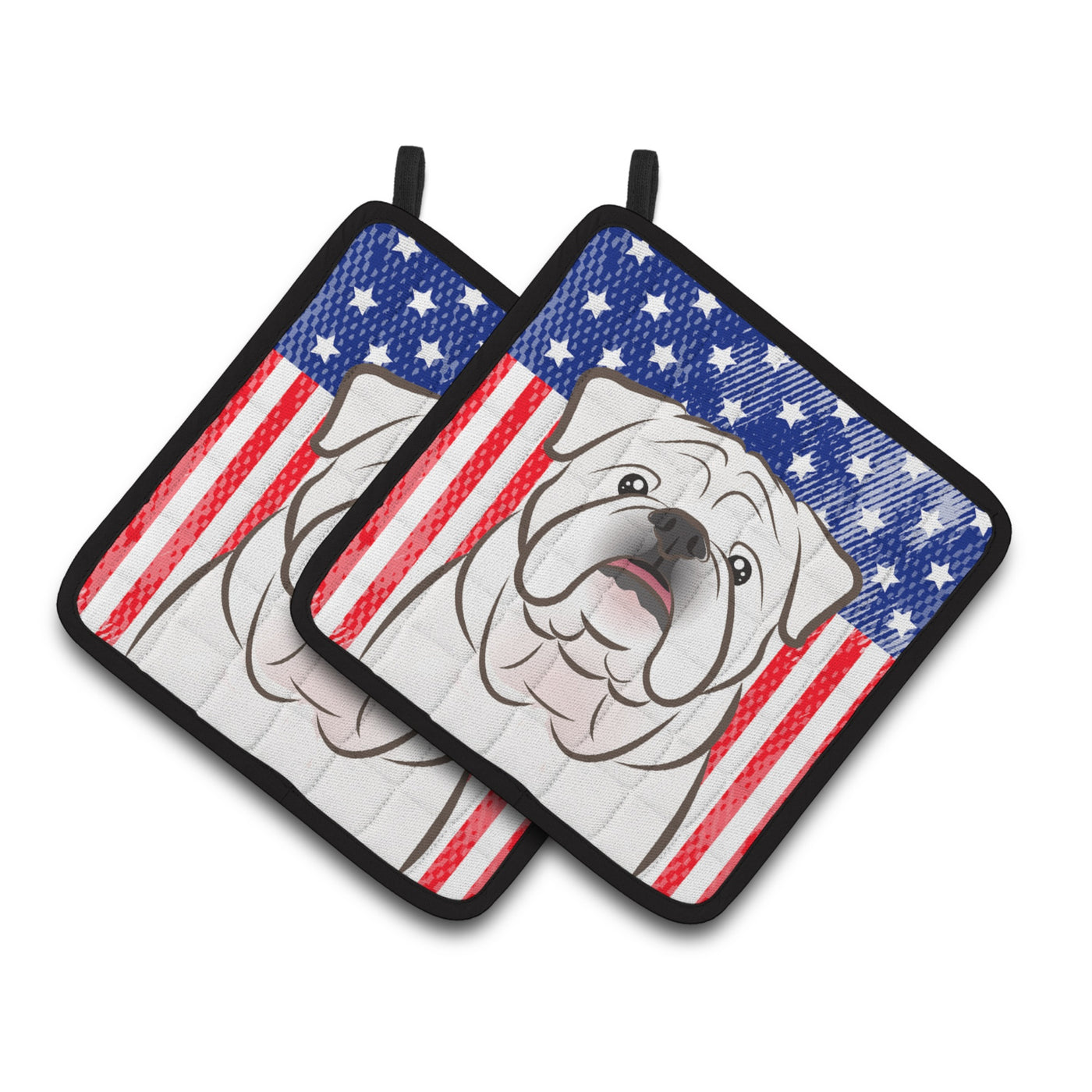'Caroline's Treasures American Flag & White English Bulldog Pair of Pot Holders BB2150PTHD 7.5HX7.5W Multicolor''