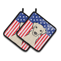 'Caroline's Treasures American Flag & Yellow Labrador Pair of Pot Holders BB2152PTHD 7.5HX7.5W Multicolor''