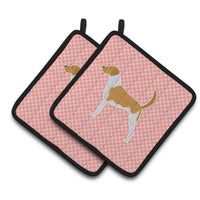 'Caroline's Treasures American Foxhound Checkerboard Pink Pair of Pot Holders BB3598PTHD 7.5HX7.5W Multicolor''