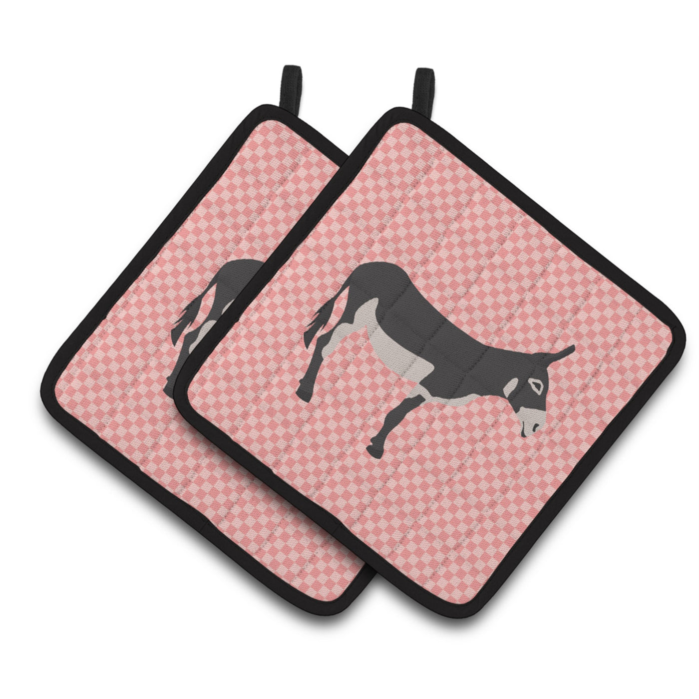 'Caroline's Treasures American Mammoth Jack Donkey Pink Check Decorated Pot Holder 7.5'''' x 7.5''''''