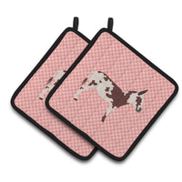 'Caroline's Treasures American Spotted Donkey Pink Check Decorated Pot Holder 7.5'''' x 7.5''''''