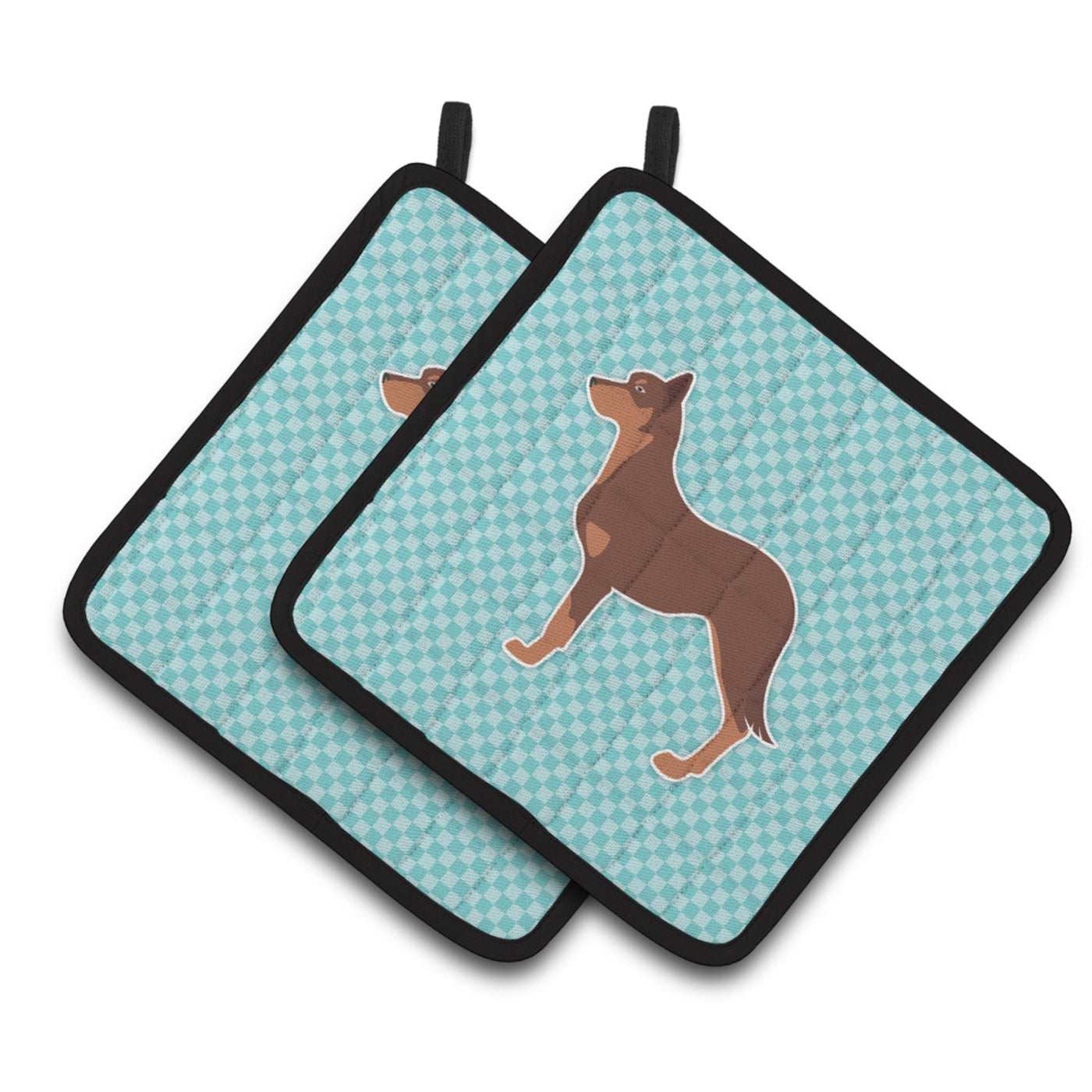 'Caroline's Treasures Australian Kelpie Dog Checkerboard Blue Pair of Pot Holders BB3729PTHD 7.5HX7.5W Multicolor''