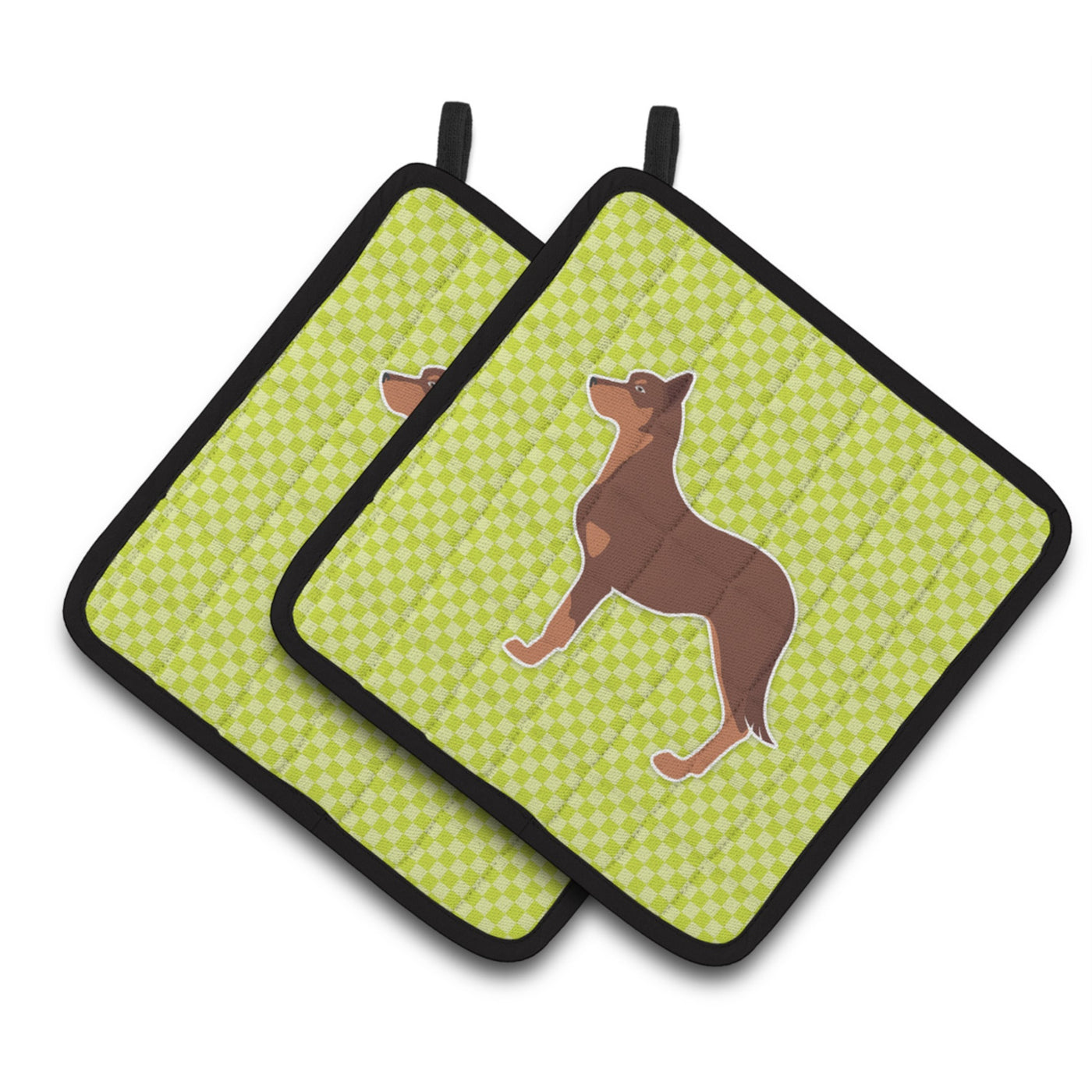 'Caroline's Treasures Australian Kelpie Dog Checkerboard green Pair of Pot Holders BB3829PTHD 7.5HX7.5W Multicolor''