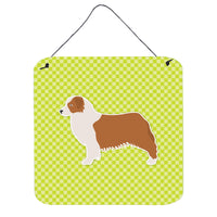 'Caroline's Treasures Australian Shepherd Dog Checkerboard Green Wall or Door Hanging Prints BB3833DS66 6'''' x 6'''' Multicolor''