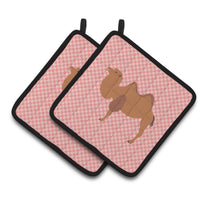 'Caroline's Treasures Bactrian Camel Pink Check Decorated Pot Holder 7.5'''' x 7.5''''''