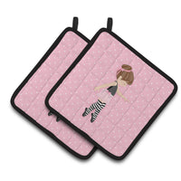 'Caroline's Treasures Ballerina Brunette Releve Pair of Pot Holders 7.5HX7.5W Multicolor''