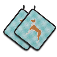'Caroline's Treasures Basenji Checkerboard Blue Pair of Pot Holders BB3774PTHD 7.5HX7.5W Multicolor''