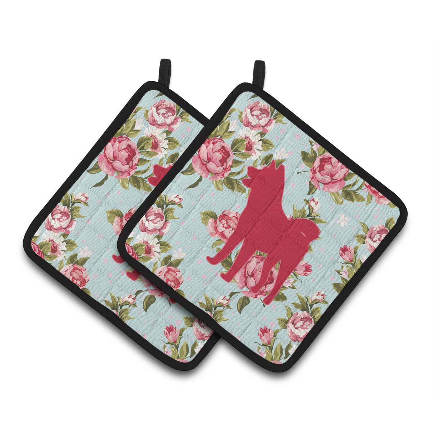 'Caroline's Treasures BB1082-RS-BU-PTHD Akita Shabby Chic Blue Roses Pot Holders (1 Pair) 7.5'''' x 7.5'''' Multicolor''