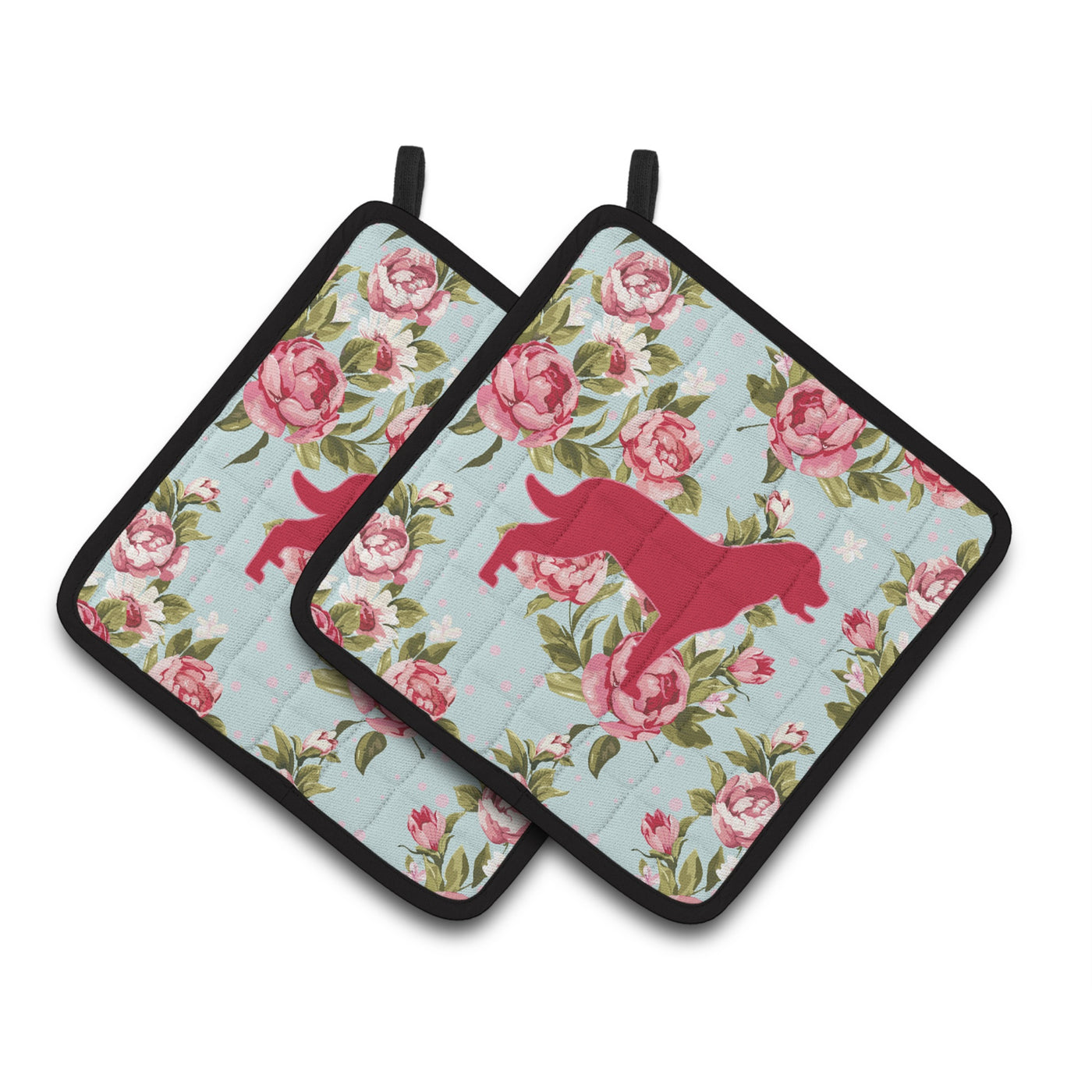 'Caroline's Treasures BB1111-RS-BU-PTHD Labrador Shabby Chic Blue Roses Pot Holders (1 Pair) 7.5'''' x 7.5'''' Multicolor''