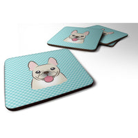 'Caroline's Treasures BB1176FC Checkerboard Blue French Bulldog Foam Coaster (Set of 4) 3.5'''' H x 3.5'''' W Multicolor''