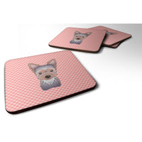 'Caroline's Treasures BB1232FC Checkerboard Pink Yorkie Puppy Foam Coaster (Set of 4) 3.5'''' H x 3.5'''' W Multicolor''