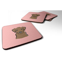 'Caroline's Treasures BB1234FC Checkerboard Pink Chocolate Labrador Foam Coaster (Set of 4) 3.5'''' H x 3.5'''' W Multicolor''