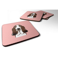 'Caroline's Treasures BB1243FC Checkerboard Pink Basset Hound Foam Coaster (Set of 4) 3.5'''' H x 3.5'''' W Multicolor''