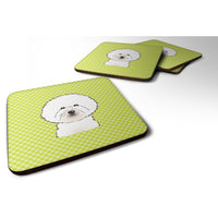 'Caroline's Treasures BB1279FC Checkerboard Lime Green Bichon Frise Foam Coaster (Set of 4) 3.5'''' H x 3.5'''' W Multicolor''