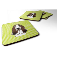 'Caroline's Treasures BB1305FC Checkerboard Lime Green Basset Hound Foam Coaster (Set of 4) 3.5'''' H x 3.5'''' W Multicolor''