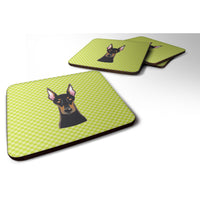 'Caroline's Treasures BB1307FC Checkerboard Lime Green Doberman Foam Coaster (Set of 4) 3.5'''' H x 3.5'''' W Multicolor''