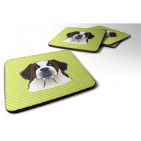 'Caroline's Treasures BB1308FC Checkerboard Lime Green Saint Bernard Foam Coaster (Set of 4) 3.5'''' H x 3.5'''' W Multicolor''