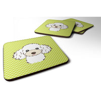 'Caroline's Treasures BB1319FC Checkerboard Lime Green White Poodle Foam Coaster (Set of 4) 3.5'''' H x 3.5'''' W Multicolor''