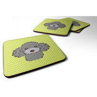 'Caroline's Treasures BB1321FC Checkerboard Lime Green Silver Gray Poodle Foam Coaster (Set of 4) 3.5'''' H x 3.5'''' W Multicolor''