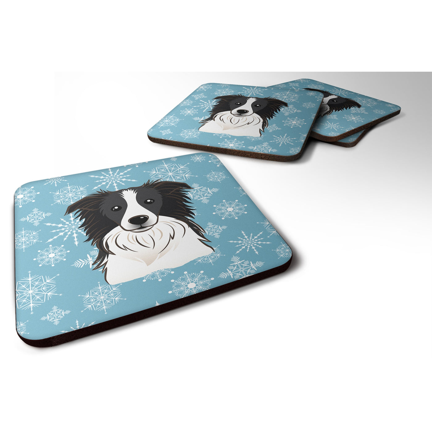 'Caroline's Treasures BB1675FC Snowflake Border Collie Foam Coasters (Set of 4) 3.5'''' Multicolor''