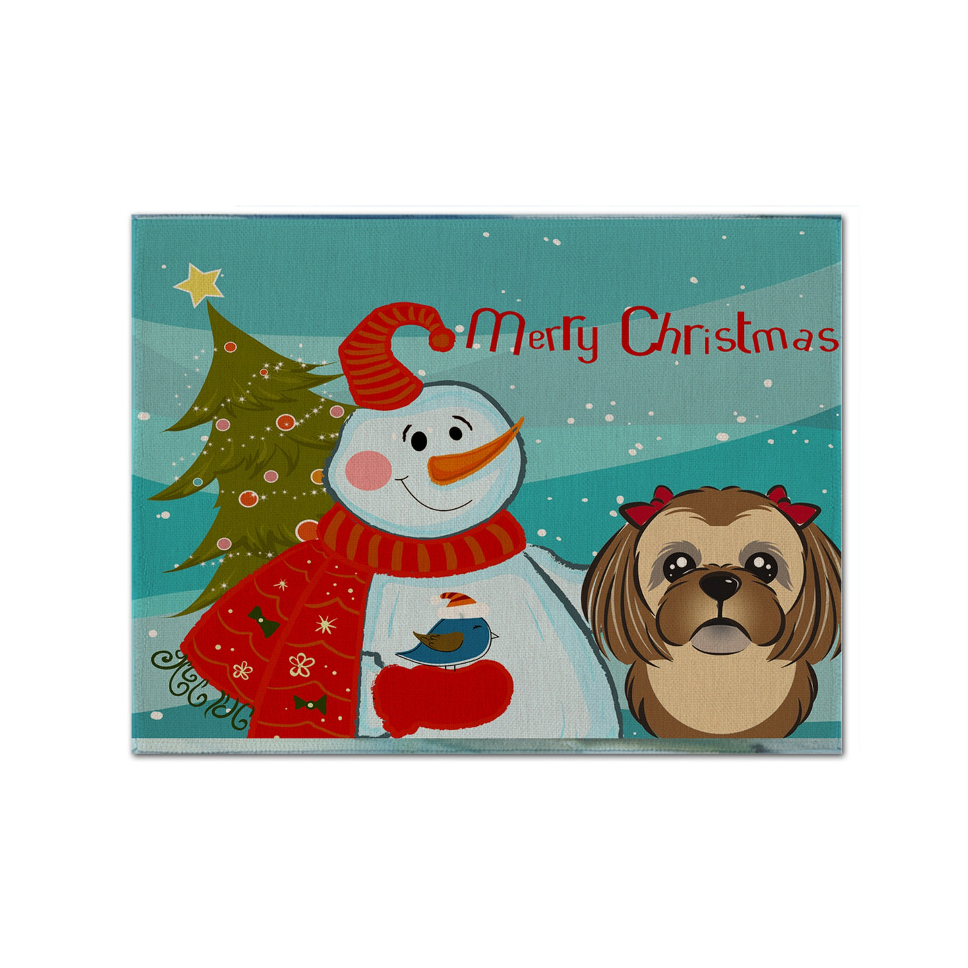 'Caroline's Treasures BB1869PLMT Snowman With Chocolate Brown Shih Tzu Fabric Placemat Multicolor''