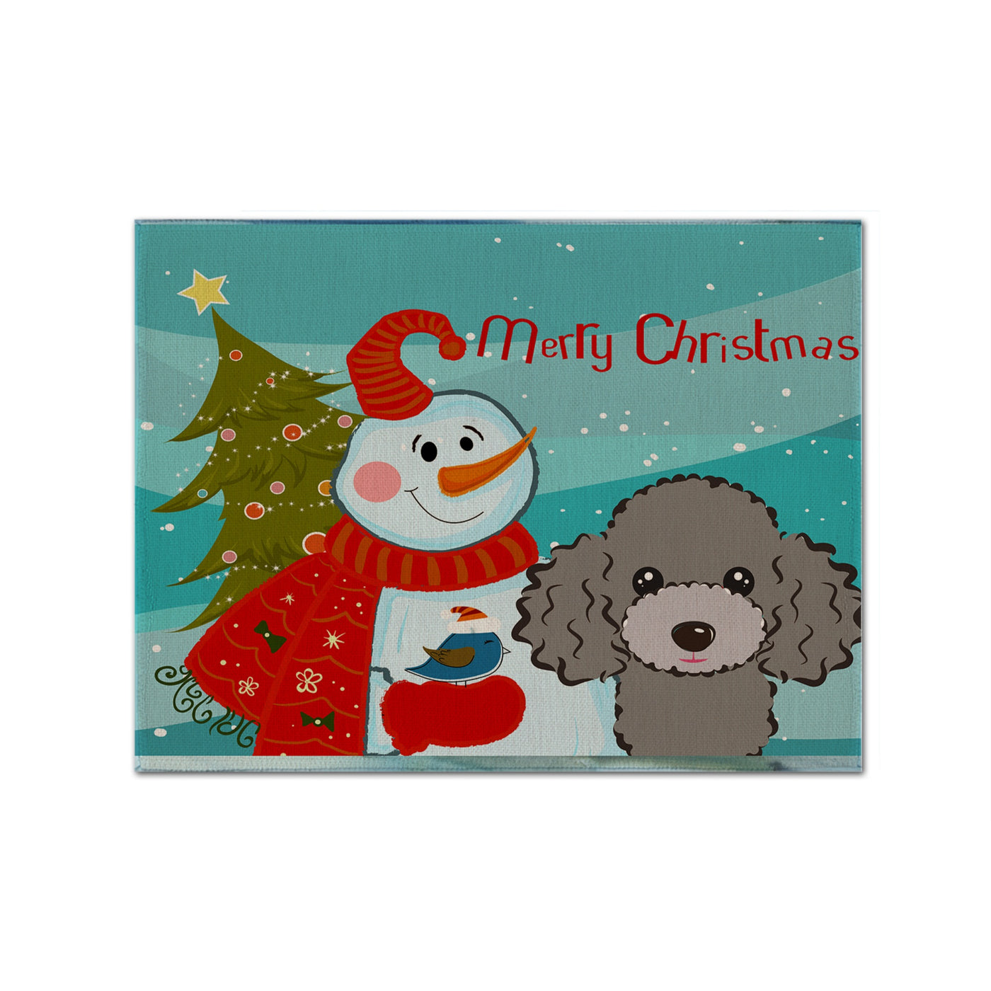 'Caroline's Treasures BB1879PLMT Snowman With Silver Gray Poodle Fabric Placemat Multicolor''