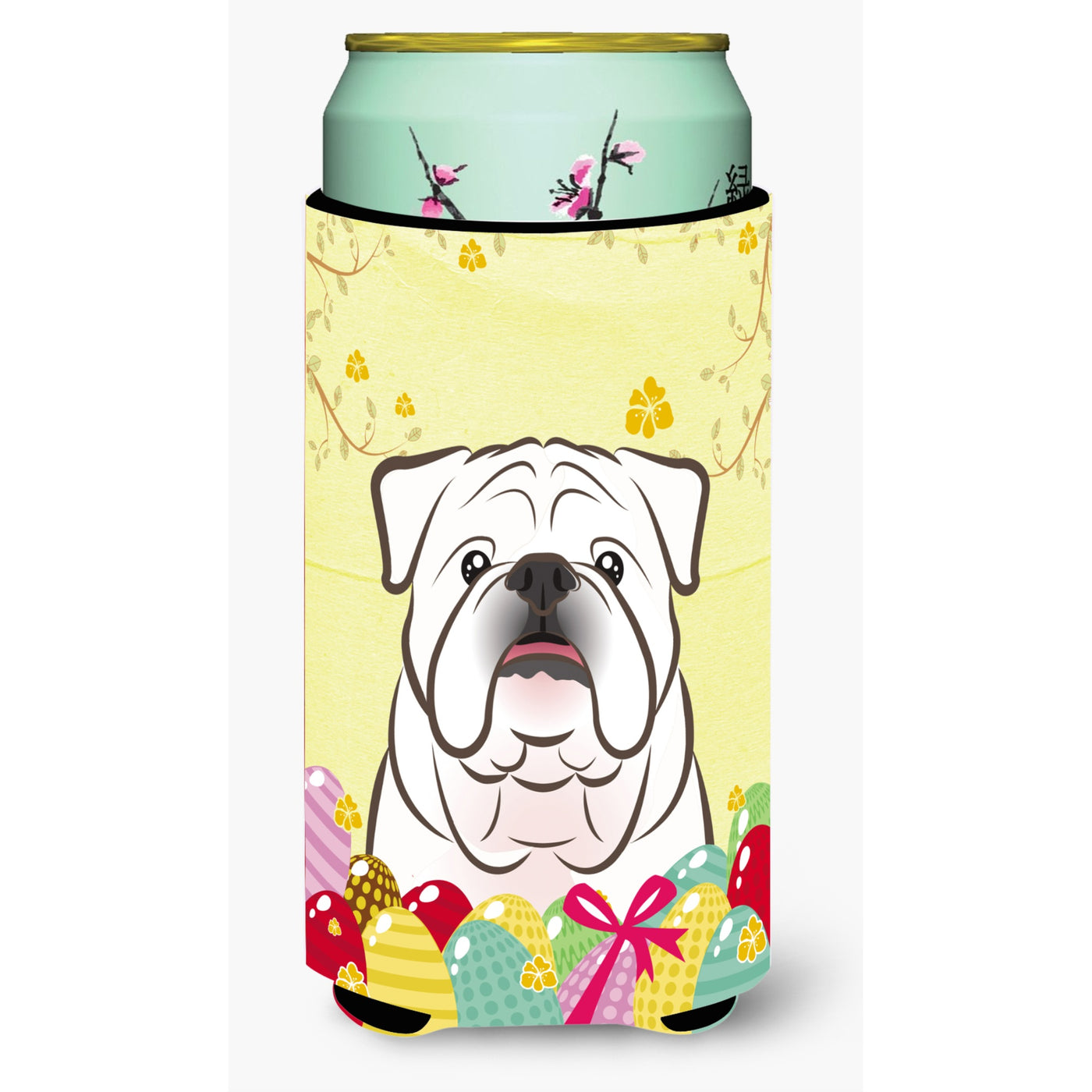 'Caroline's Treasures BB1902TBC ''''White English Bulldog Easter Egg Hunt'''' Tall Boy Hugger Koozie Multicolor''