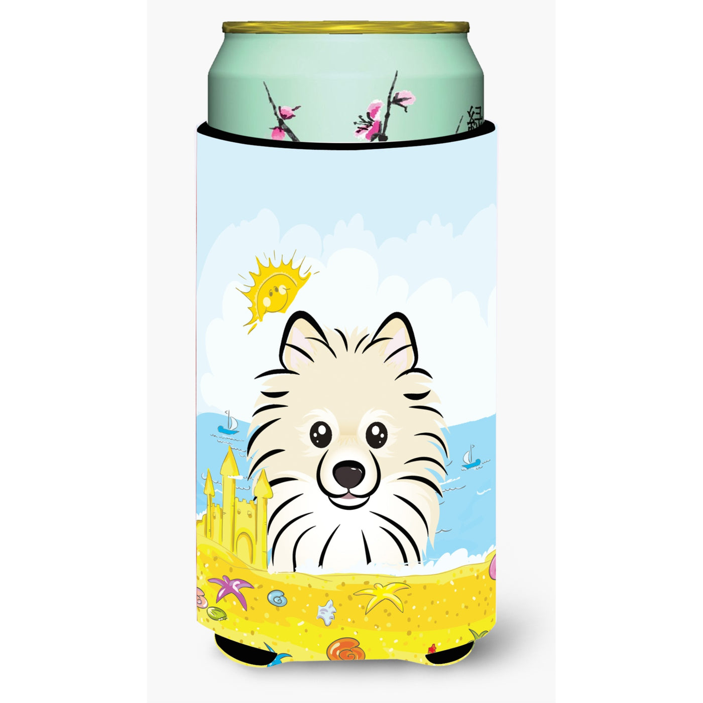 'Caroline's Treasures BB2075TBC ''''Pomeranian Summer Beach'''' Tall Boy Hugger Koozie Multicolor''