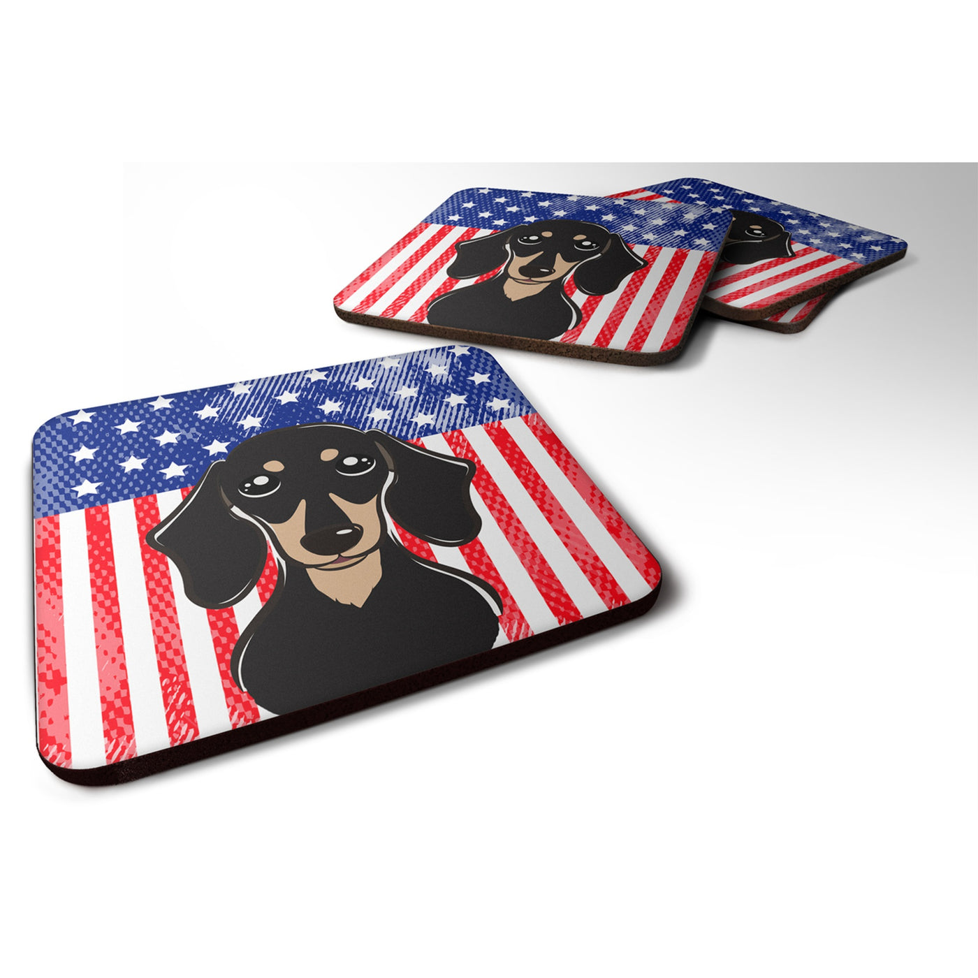 'Caroline's Treasures BB2145FC American Flag And Smooth Black And Tan Dachshund Foam Coaster (Set of 4) 3.5'''' Multicolor''