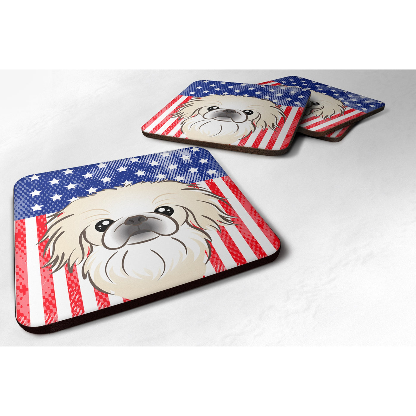 'Caroline's Treasures BB2151FC American Flag And Pekingese Foam Coaster (Set of 4) 3.5'''' Multicolor''