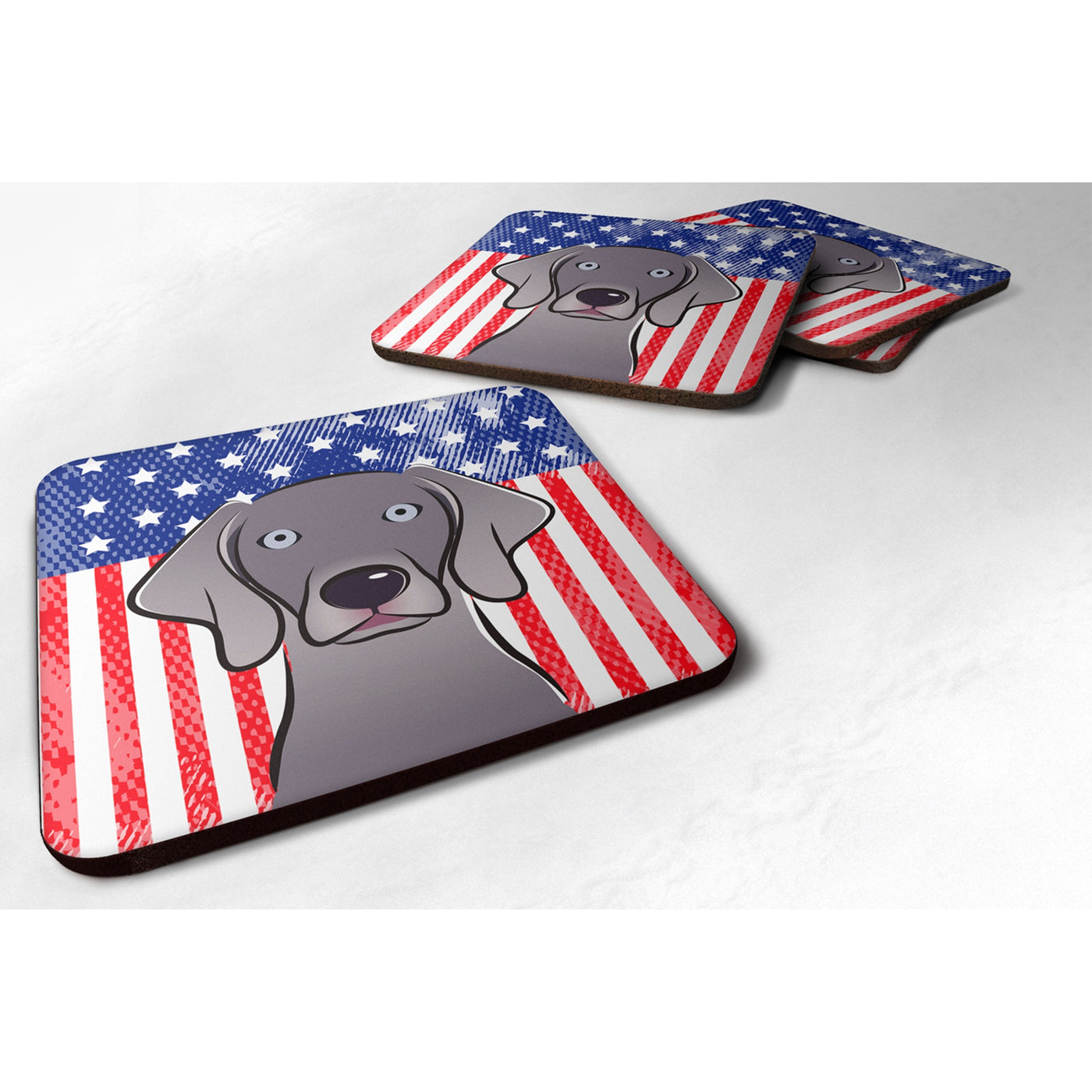 'Caroline's Treasures BB2161FC American Flag And Weimaraner Foam Coaster (Set of 4) 3.5'''' Multicolor''