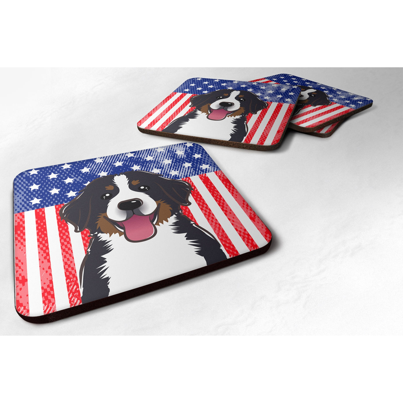 'Caroline's Treasures BB2167FC American Flag And Bernese Mountain Dog Foam Coaster (Set of 4) 3.5'''' Multicolor''